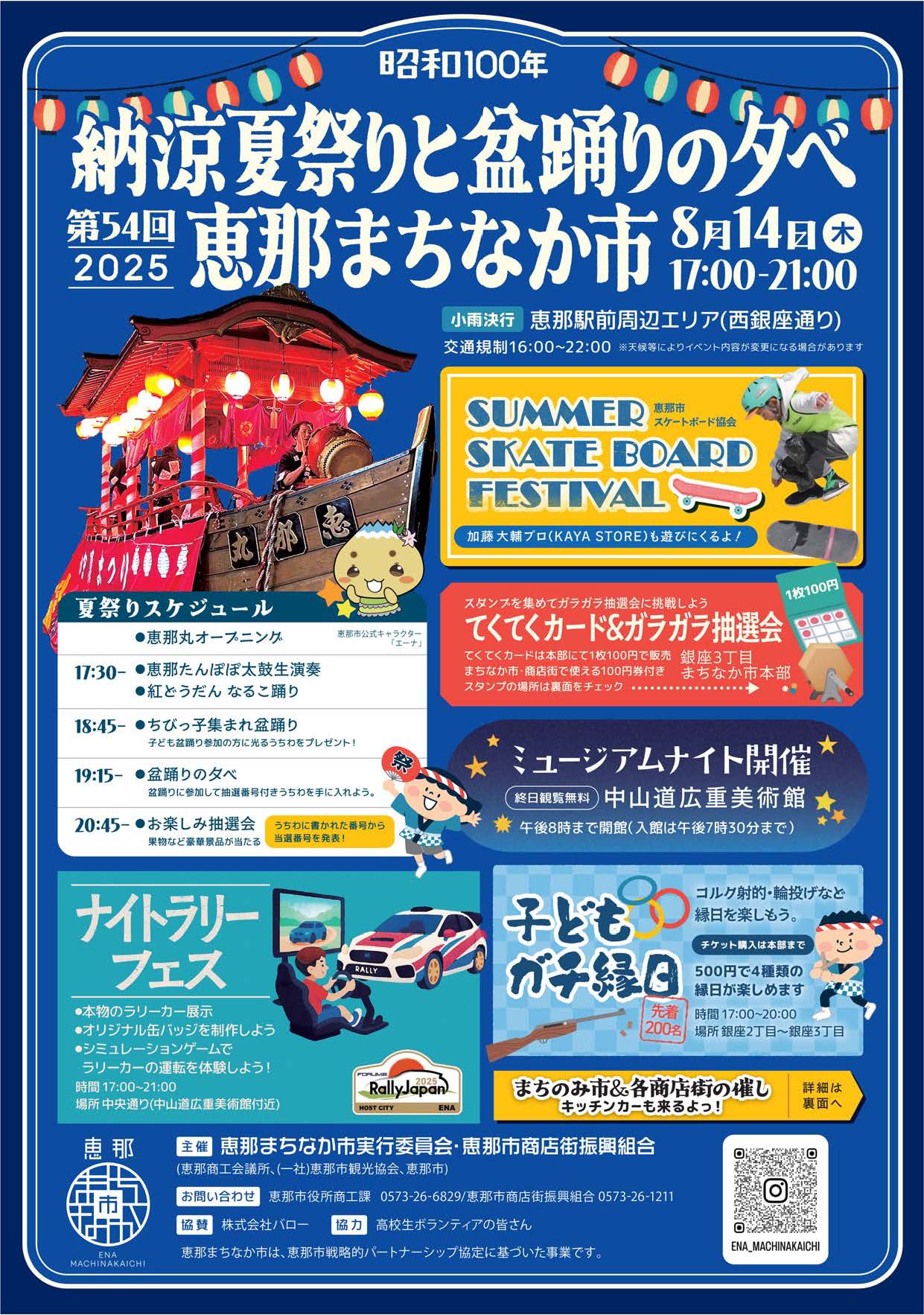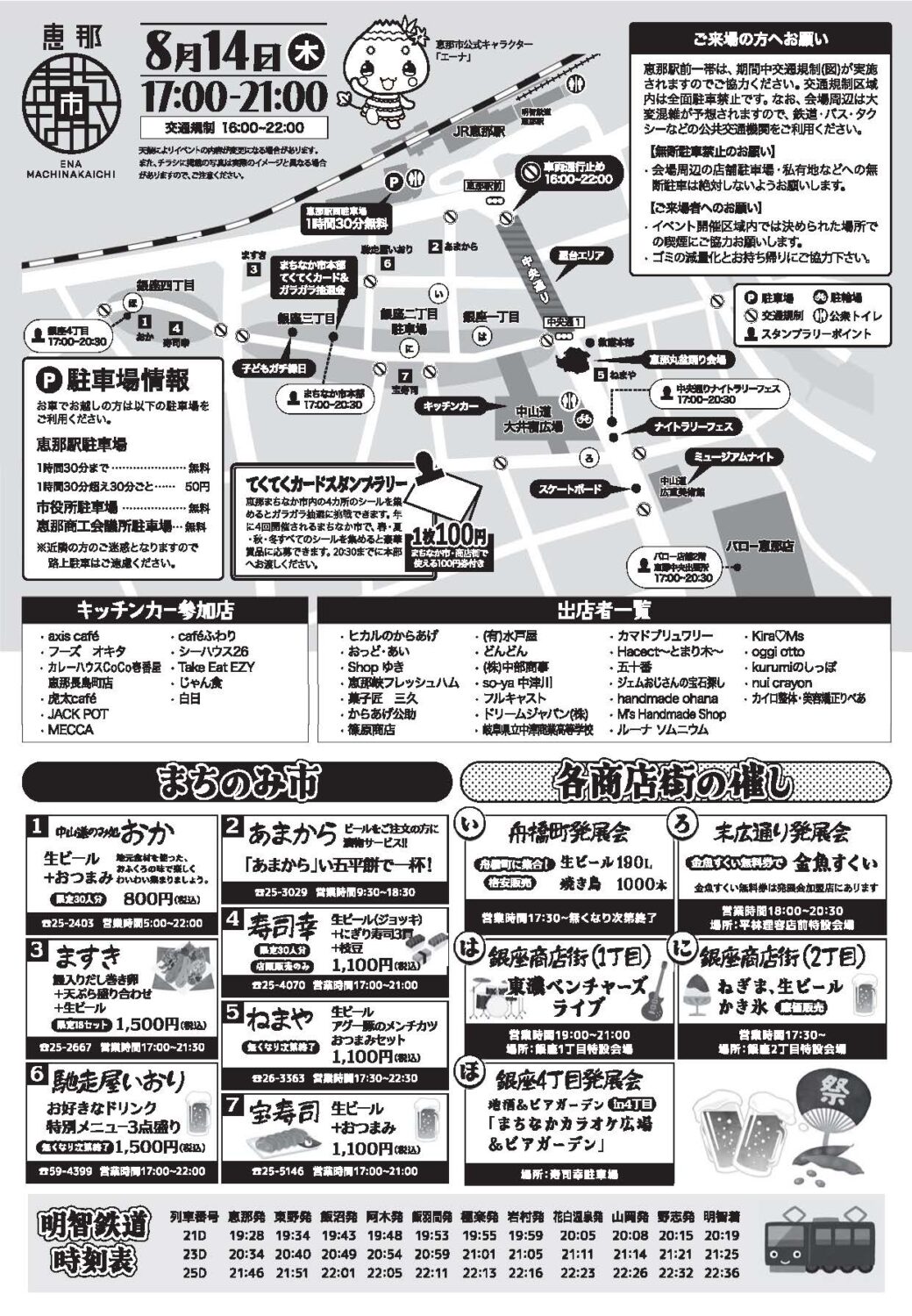 場所:恵那駅前周辺エリア (※ナイトラリーフェスは中央通りの中山道広重美術館付近にて出展します。)
